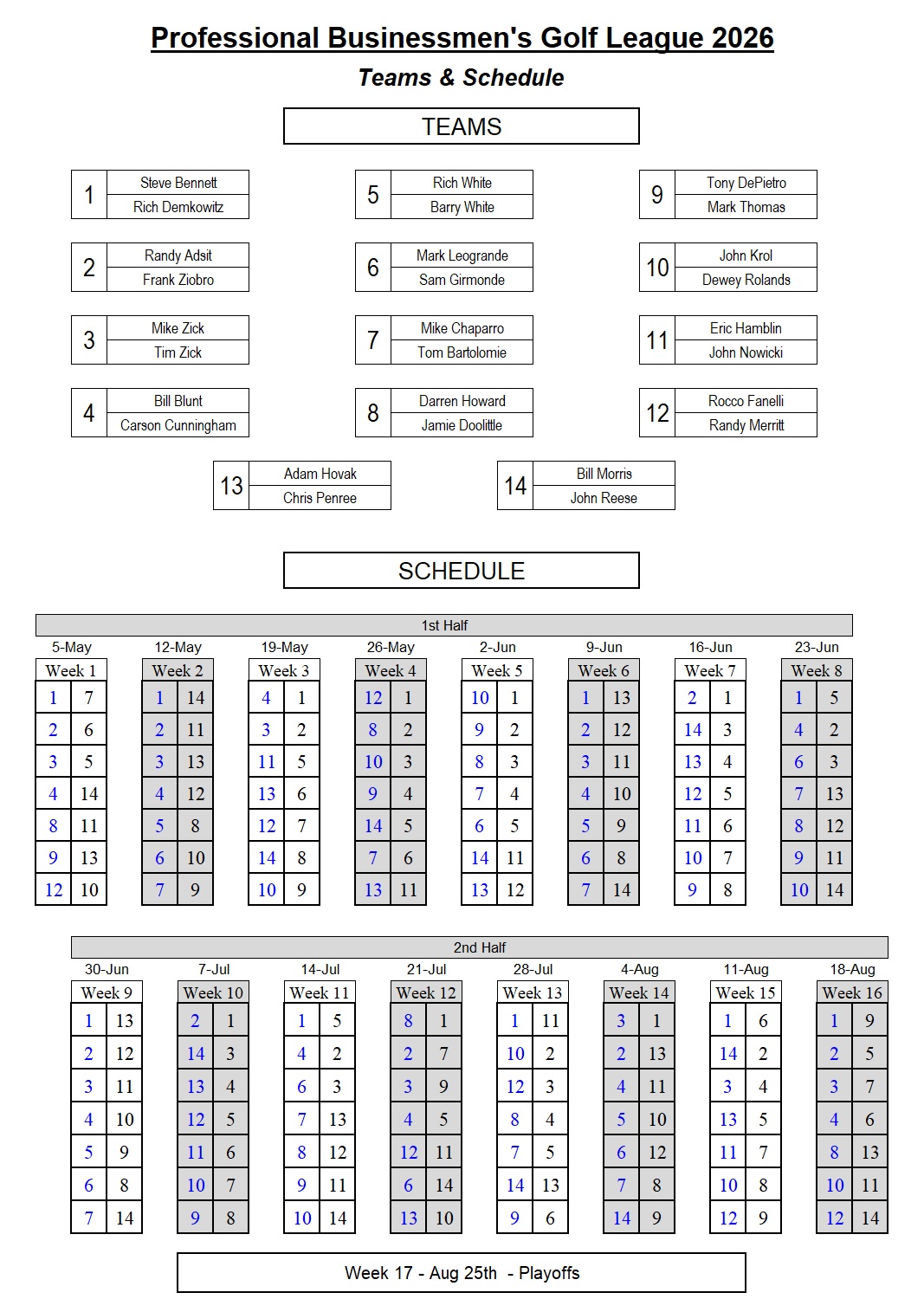 Home - Schedule - Handicaps - Standings -CTP Winners - League YLS - Rules - Accounting - Contact Info