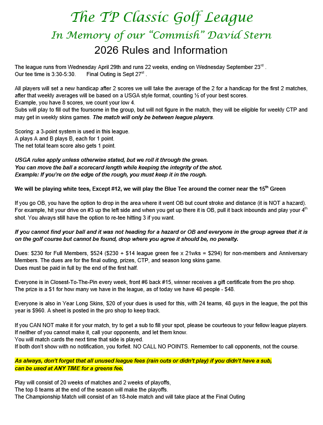 Rules & Info - Contact Info - Playoffs - Outing Info - Accounting
