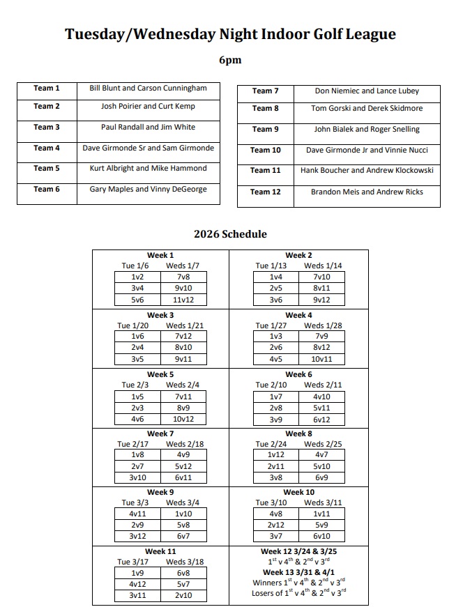 Home - Schedule - Standings & Weekly Games - Handicaps - Rules